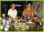 西港市場廁所邊有家小吃廡,販賣蝦仁焢肉飯,每天上午十點半上市,中午十二點便收攤休息。短短的一個半小時,便售完當天早晨所製作的二百多份蝦仁焢肉飯,慢到的食客,只能望攤興嘆。常有客人質問道:生意如此搶手,為何不多做一些?老板陳茂源歉然地表示:每天從上午八點來到賣場開始烹製,二個小時也只能製作二百多份,再多就做不出來了,何況太早製作,新鮮度不夠,既不好吃,衛生上亦恐有問題