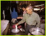 提到西港碗粿,大家立刻就想到「碗粿良仔」黃良先生。今年六十一歲的他,賣碗粿已有三十多年的歷史。雖然設在西港區中山路舊市場的店面相當簡陋,卻是八十多年的老店了。那是黃良的父親黃能安(1897-1981)開設的。黃良仍保有一張父親黃能安民國廿六年的開業登記證,但黃能安早在民國初年便開始舊市場擺攤賣碗粿了。
